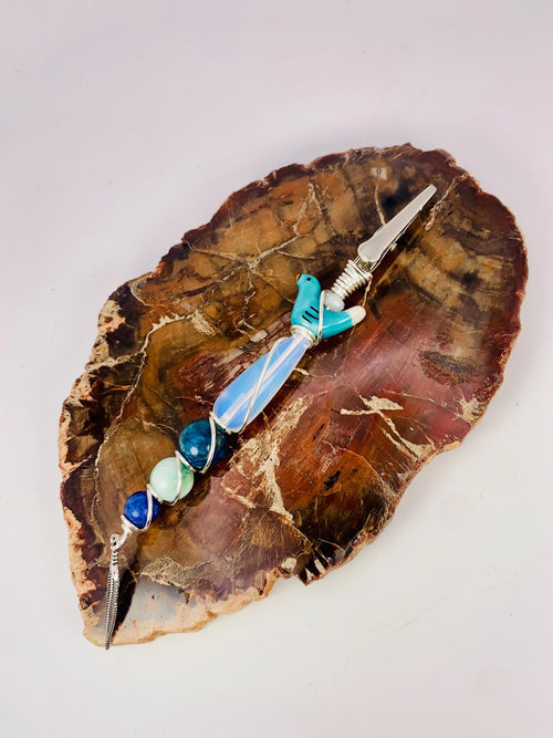 Blue Crystals birdy smoke clip, Moonstone, Opalite, Blue Apatite, Green Moonstone, Sodalite, Smoking clip, Wire wrapped, handmade, rituals