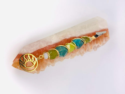 Amazonite, Green Jade, Opalite, Gold Wire, Moon charm, Sun charm, wire wrapped, smoke clip, smoking accessory, metaphysical